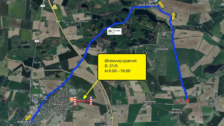 - Tirsdag d. 20. maj fra kl. 06:00 til 18:00 vil Ørslevvej være spærret mellem Ugledigevej & Rørkærvej.